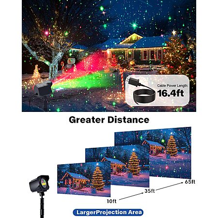 Product Description from Amazon- 【Brighter and More Brilliant Laser Christmas Projector Lights】 Our high-brightness laser light combines (red-green/red/green) colors into three unique combinations. With a dynamic firefly effect, adjustable speed, and static control, it creates a stunning light show. The included remote control allows you to choose the perfect color combination, speed, and timer settings, ensuring a brighter and more vivid display compared to ordinary laser lights on the market.