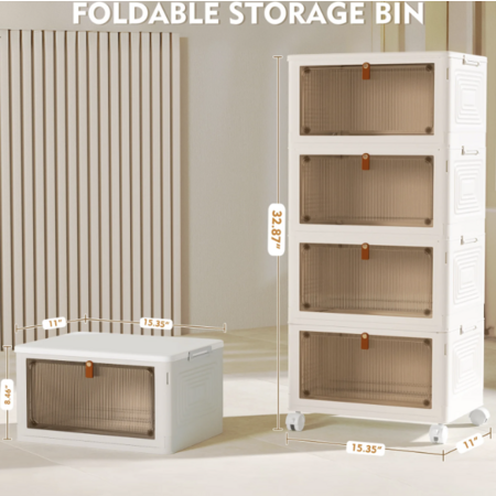 Model: OKENTEN Rolling Wheeled Plastic Storage Bins with Lid, 4-Tier Stackable Folding Storage Containers, 92 Qt Capacity