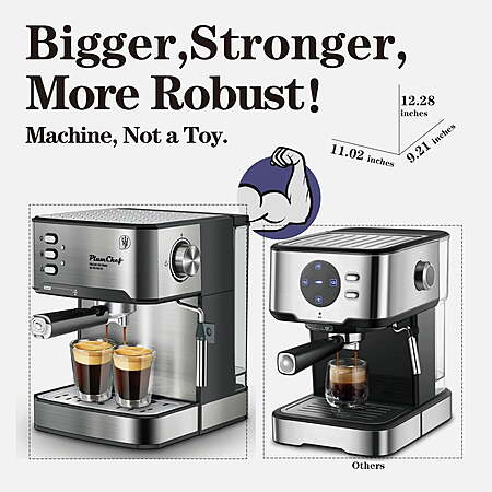 Espresso Coffee Machine for Home - Combining a classic retro design with modern functionality, this compact espresso machine seamlessly fits among your kitchen countertop appliances. Ideal for home, office, or as a thoughtful gift, the stainless steel coffee maker includes an integrated milk frother to craft a variety of espresso-based drinks—enjoy barista-quality lattes, cappuccinos, and macchiatos anytime, with ease. Highlights: 20 BAR Professional Pressure System: This semi-automatic 2-in-1 espresso machine features a professional 20-bar Italian pump and an 850W boiler. High-pressure extraction ensures optimal release of coffee oils and full flavor essence. Powerful Milk Steamer: Equipped with a stable steam control system, the milk frother creates rich, velvety foam for creamy beverages. The 360° adjustable and removable steam wand also dispenses hot water for other drinks and allows for effortless cleaning. Quick Start System: With a 30-second rapid preheat function, the machine automatically adjusts water temperature based on extraction to balance acidity and enhance flavor. Place your cup on the warming top during preheating to save time and ensure a delicious coffee experience. Manual Brew Control: You have full control over the brewing process. To customize the strength of your coffee, simply press the coffee button again once the liquid reaches your desired level—this manually stops the water flow, allowing you to tailor each cup to your taste. Practical & User-Friendly Design: Featuring a removable 1.6L transparent water tank for easy refilling and cleaning, this machine supports multiple brews without frequent refills. The drip tray is dishwasher-safe, and the tall design accommodates larger cups. Please Note: At Plum Chef, your satisfaction matters. Should you have any questions or issues, we’re here to help. For optimal performance, please follow the user manual closely. Insufficient pressure or irregular water flow may result from overly coarse or uneven coffee grounds, incorrect dosing, or inadequate tamping. Important Reminder: The milk frother’s metal cover is stored with the measuring scoop. This machine requires manual stopping. If not manually paused by pressing the coffee button again, the machine will continue to output water. Please never leave the machine unattended during the coffee extraction process, as this can cause water to overflow and create a mess. Skip the coffee shop and become your own barista. This machine makes it easy to brew rich espresso and frothed milk for lattes and cappuccinos right in your kitchen. Equipped with a 20-bar professional pump, it delivers optimal pressure to unlock the full flavor and authentic aroma of your coffee beans. Enjoy complete control over your brew strength. Simply press the button once to start and again to stop when your cup is perfectly full. (Please do not leave the machine unattended during use.) The powerful steam wand creates silky microfoam for classic milk-based drinks, while the removable 1.6L water tank makes refilling and cleaning simple. With a 30-second quick heat-up system and a space-saving design, it's built for convenience. The package includes 3 shot baskets to get you started immediately. For any issues, please first message us via the walmart’s internal message system. Alternatively, you can reach us at:
