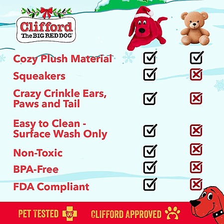 14" Clifford Plush Squeaky Crinkle Dog Toy (Holiday Edition)