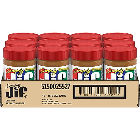 12-Pack 15.5-Oz Jif Peanut Butter (Simply Creamy) $17.56 w/ S&S + Free Shipping w/ Prime or on $35+