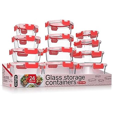 $26.99 Bakken Borosilicate Glass Food Storage Containers with Lids 24 Pieces (Red) Amazon