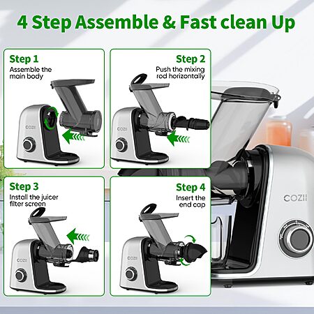 $31.99*:[Prime]3.6" Wide Feed Chute COZII Cold Press Juicer Extractor