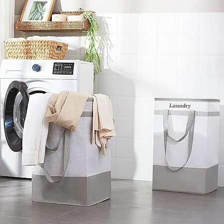 FairyHaus via Amazon.com has FairyHaus Laundry Basket 100L, 2Pack Laundry Hamper with Easy Carry Handles, Collapsible Laundry Baskets Hampers for Bathroom Clothes Storage Grey on sale for $11.89.