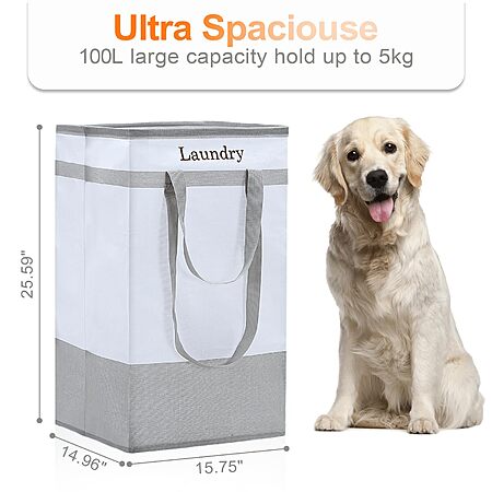 - Large Capacity: Each laundry basket holds up to 100 liters, making it ideal for handling large loads of laundry. No more frequent trips to the laundry room; our baskets can hold it all. Laundry hamper size: 15.75"L x 14.96"W x 25.59"H.