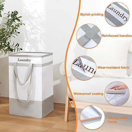 - Freestanding Structure: Thanks to the sturdy frame on top, the clothes hamper stands upright and maintain its shape. For optimal stability, distribute clothes evenly inside without placing them over the edge to maintain balance and prevent collapse.