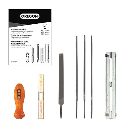 Amazon.com has Oregon Universal Chainsaw Field 7pc Sharpening Kit - Includes 5/32", 3/16", and 7/32" Round Files, 6" Flat File, Handle, Filing Guide, and Travel Pouch (617067) on sale for $10.99. Shipping is free with Prime or orders $35+.