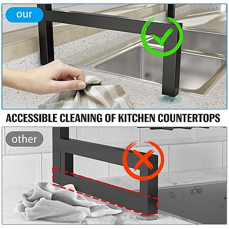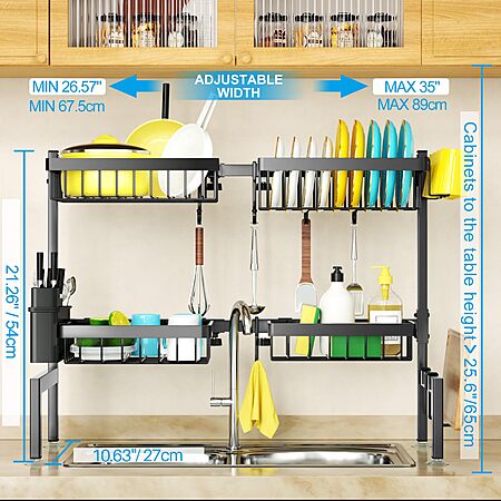 - 【Perfect size】Rack dimensions 35"L x 10.63"W x 21.26"H, adjustable to fit most sinks. Ensure faucet is under 21.26" high and cabinet bottom to counter top height is at least 25.6". Please note potential 0.4-0.8 inch measurement error, so measure carefully before purchasing.