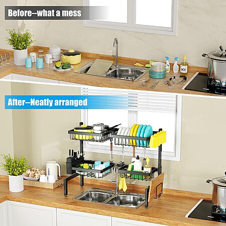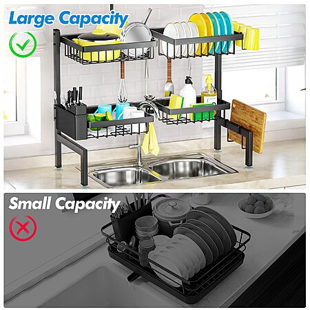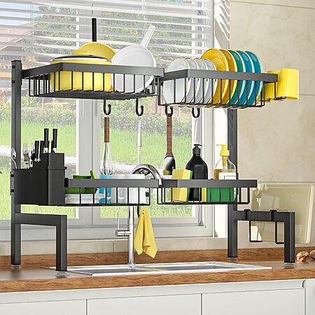 LINYU-US via Amazon.com has SNSLXH [2-Tier 4 Baskets Over The Sink Dish Drying Rack, 26.57"-35", Large Sink Rack for Kitchen, Extensible and Adjustable, Saving Kitchen Space on sale for $18.99.