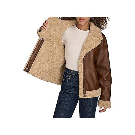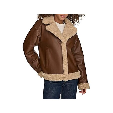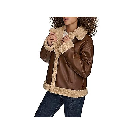 Levi's Women's Faux Leather Sherpa Lined Moto Jacket, Brown $53