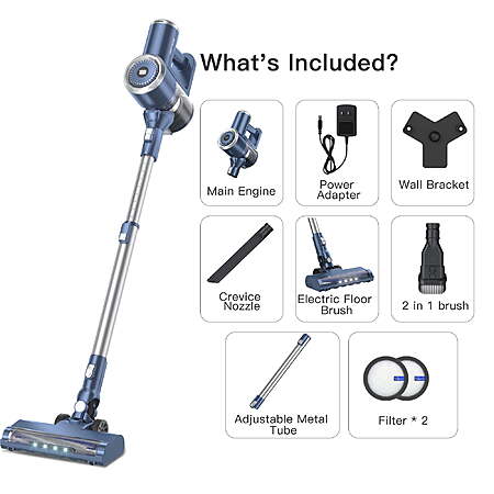 | Product Description: | PrettyCare Pretty Life, Care Your Life. Whether your goal is to clean up a pile of pet hair,a handful of spilled breadcrumbs or a big mess of dirt,the PrettyCare W200 cordless vacuum cleaner makes it easy to solve all your problems and give you a clean, healthy and comfortable home. In addition to the basic cleaning functions, we have also done a lot of details, welcome to experience our versatile, powerful and intelligent cordless vacuum cleaner, it will bring you a new cleaning efficiency! ✅【6 * 2500mAh/ Upgraded Motor】 The PrettyCare cordless vacuum cleaner is equipped with a 6*2500mAh high-power battery and a high-performance 180W upgraded motor.It is very reliable because the larger capacity battery gives you a longer cleaning time. Say goodbye to annoying "cleaning breaks" and ensure a thorough cleaning of your 1937.50 square foot home in one go. ✅【48 minutes Running Time /28Kpa Super Suction】 With 28Kpa hurricane suction and 2 adjustable modes,the PrettyCare cordless vacuum cleaner can run for about 20 minutes at 28KPA power mode and even for about 48 minutes at 15kPa normal suction,amazingly it can adapt to different conditions and allow full use of the battery. It instantly wicks away dirt,debris,pet hair and stains and easily cleans hard floors, tiles and carpets.Please note that the actual use time may vary due to differences in use scenarios and accessories. ✅【Integrated LED Display and Warm Dust Cup】 The electric vacuum cleaner is equipped with a smart LED display so you can easily view the current status of the vacuum cleaner. Large capacity 1.3L large dust collection cup adopts "one-button dust collection" design, no need to constantly pull the trigger when vacuuming, making it easy to empty. ✅【6-stage High Efficiency Purification and Filtration】 In order to provide users with extremely clean air and excellent cleaning experience,we have developed a stainless steel filter filtration system, a powerful cyclone/precision filter hole and a 6-stage HEPA filtration system that can capture 99.99% of fine dust as small as 0.1 microns and discharge clean air. It has twice the service life of conventional filtration systems.(HEPA is washable and recyclable). ✅【Flexible LED Electric Floor Brush Head and Adjustable Tube】 To make it easy to look into dark corners and track dust,debris and hair under furniture,we designed four LED headlights on the floor brush.To clean all those hard-to-reach corners under the furniture and under the bed and remove all the dust, we also come with a flexible 180°side-swivel and 90°up-and-down swivel floor brush head and self-adjusting telescopic rod. Make cleaning more thorough and effective. ✅【Upright and Wall-mounted Cordless Vacuum Cleaner】 The lightweight unit weighs just 2.8 pounds and has an ergonomic handle that's perfect for one-handed cleaning. Even if used for a long time, it will not make your hands tired.At the same time, our machine can stand on its own, but also equipped with a wall hanger can be hung on the wall, in the middle of cleaning, you can stop cleaning at any time and let the vacuum cleaner upright anywhere, you can also let it back to the wall hanging, both ways are easy to store and use, charging does not take up any space. ✅ 【Multi Functional Brush Head】 In addition to powerful floor brushes, we also come with convenient 2-in-1 brush heads and long flat brush heads, which have the advantage that you can combine them in a variety of different ways, so you can get the job done easily and efficiently. Easily clean stairs, curtains, windowsills, sofas, beds, cars, RVS and other hard-to-reach places! Meet all your daily cleaning needs on multiple surfaces, including hardwood floors, carpets and pet hair or food. ✅【Convenient Noiseless Operation】 The PrettyCare cordless vacuum cleaner uses ultra-lightweight materials to effectively reduce noise and provide a quiet cleaning experience. Since there is no friction from any carbon brushes, the upgraded high-power brushless motors generate less heat and are less noisy (60db), resulting in more energy saving and longer service life. The ideal gift for family and friends who value cleanliness and peace in the home. ➤ Technical Specifications: Battery: 6*2500mAh lithium-ion battery Suction: 28Kpa strong cordless vacuum cleaner Filtration Method: 6-stage purification filtration (Washable) Runing Time: Max 48 minutes Adjustable Metal Rod: 2.6 ft - 3.4 ft (Aluminum) Dust Cup: 1.3L large capacity & One key dust removal Floor Brush: 180°+ 90° rotation degree & 4 LED lights Other Brush Heads: 2 in 1 brush and crevice brush Screen: LED display Storage Way: Wall hanging & Upright Cleaning Ways: 2 Ways Product Weight: 5.4 lbs ultra light body Charging Time: 4-5 hours Noise Level: ≤60dB Cleaning Range: 180㎡(1937.50 square feet) Recommended Use: Carpet, Hard wood,Marble, Tile ➤ Technical Specifications: ➤ Technical Specifications: ➤For Better Use: 1. Please use the original adapter to charge the battery. 2. Please Clean the filter after each use and keep it dry. 3. Please ensure that each component is installed correctly before using. 4. Please don't use the cordless floor cleaner to suction anywhere with water. 5. Please promptly empty the dust in the dust collection cup after use. 6. Please clean the filter and black cylindrical sponge while emptying the trash. 7. Please keep your vacuum cleaner and charger in a cool, dry place indoors. Warm Reminder: 1/ The filter should be cleaned and replaced regularly, otherwise it may cause garbage to clog the vent, resulting in rapid suction attenuation. 2/ If you have any questions about the operation, please feel free to contact customer service, we will provide you with professional service. ➤For Better Use: ➤For Better Use: ➤ Package Include: 1 x W200 Vacuum Cleaner 1 x Rotatable Brush Head 1 x Wall Bracket 2 x Hepa Filter 1 x 2 in 1 Brush 1 x Crevice Nozzle 1 x 