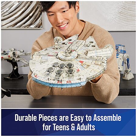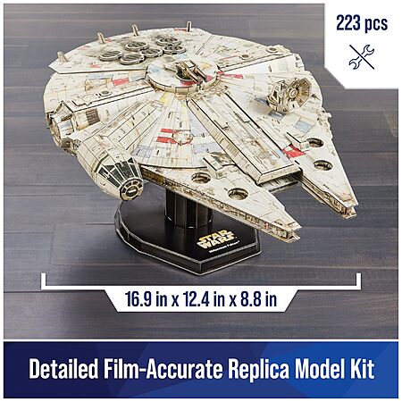 Amazon.com has 4D Build Star Wars Millennium Falcon 3D Model Kit, Star Wars Gifts, Desk Decor for Fans & Collectors, 223 Pieces, 3D Puzzles, Gift Ideas for Ages 12 & Up on sale for $13.49. Shipping is free with Prime or orders $35+.