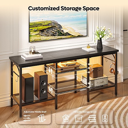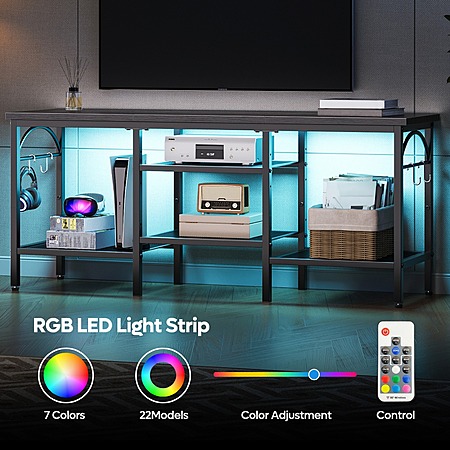 Model: Pinmoco TV Stand for TVs up to 55 Inch, LED Light Entertainment Center with Open Storage Shelves, TV Media Console Table for Living Room, Bedroom, Black