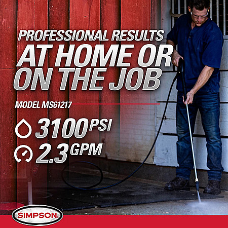 SIMPSON 3,100 PSI 2.3 GPM Gas Cold Water MegaShot Residential Pressure Washer, 49-State $239.99