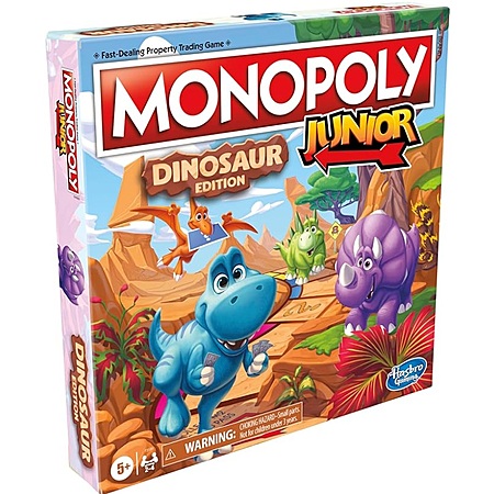 FAST AND FUN KIDS GAME: Monopoly Junior Dinosaur board game is a fun indoor games for kids ages 5 and up. It's designed to be fast and exciting for younger players, and it's a great introduction to the world of the Monopoly board game. Ideal gifts for 5 year old boy and girl and up with a dinosaur gifts theme.