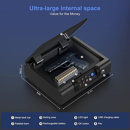 Biometric Gun Safe for Pistols 3-Ways unlock Fingerprint Digital PIN Key Unlock Handgun Safe with Sound $41.98