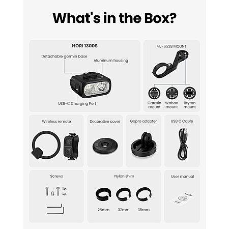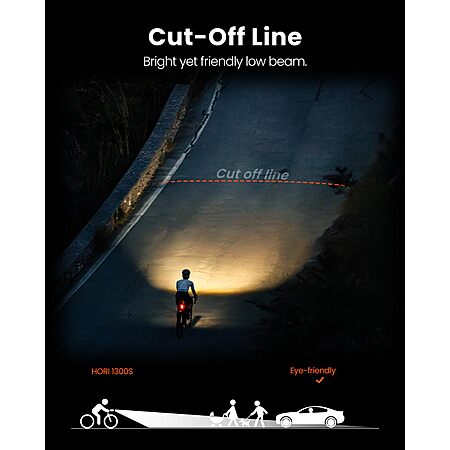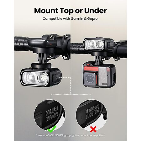 Magicshine HORI1300S Bike Headlight, Compatible with Garmin/Wahoo, 1300 Lumens High & Low Beam Front Light, USB-C Rechargeable, IPX6 Waterproof | $63.99