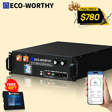 ECO-WORTHY 51.2V 100Ah 5.12KWh Lithium LiFePO4 Server Rack Battery + Battery Monitor (additional gift, automatically adds in cart) on sale for $974.99 - $195 w/ coupon code