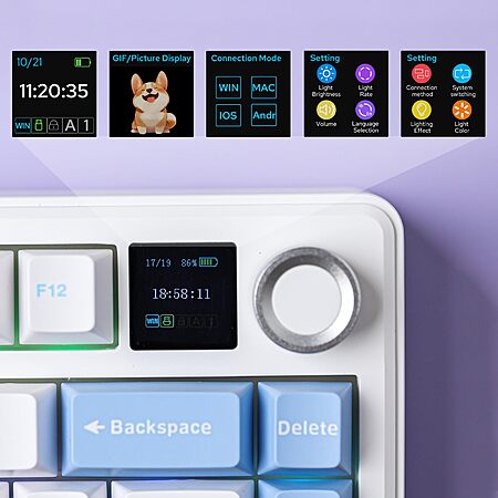 EPOMAKER X Aula F75 MAX Wireless Mechanical Keyboard with TFT Screen and Knob (Blue&White&Purple) $55.99 + Free Shipping