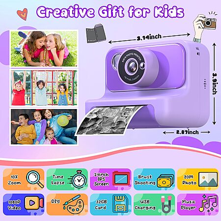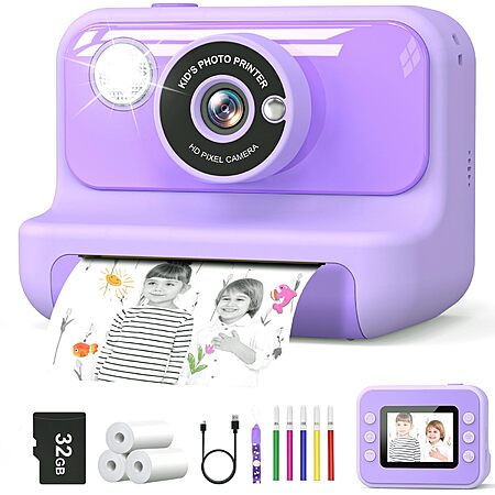 Gofunly Kids' Instant Print 1080p Digital Video Camera w/ 32GB Micro SD Card (Purple) on sale for $27.05 - 50% off when you enter the coupon code