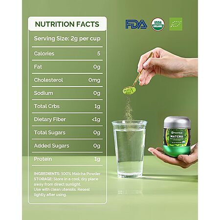 • USDA ORGANIC CERTIFIED - Our matcha is officially certified organic by the USDA, ensuring it's grown without synthetic pesticides or fertilizers. This certification guarantees a pure, safe, and trustworthy product for your health and wellness needs.