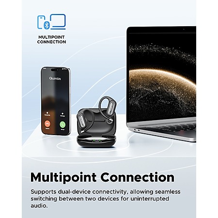 Model: truefree DS1 Open-Ear Headphones, Bluetooth 6.0 Wireless Earbuds with Ear Hooks, Spatial Sound, 4 Mics Clear Calls, 40H Playtime, Fast Charging, Multipoint Connection, IPX5-Rated for Sports, Snug Fit