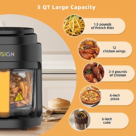 VUSIGN 5 Quart 1000W Air Fryer with 360° Viewing Glass Pot $44.99 + Free Shipping