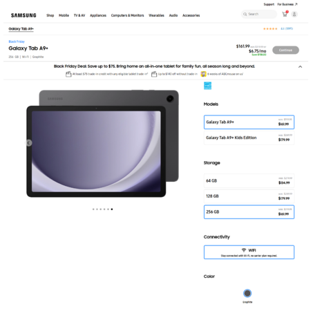 Galaxy Tab A9+ [samsung.com] 256GB storage / 8GB RAM version for $161.99 for EPP/EDU members.