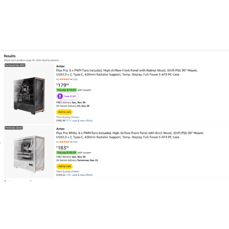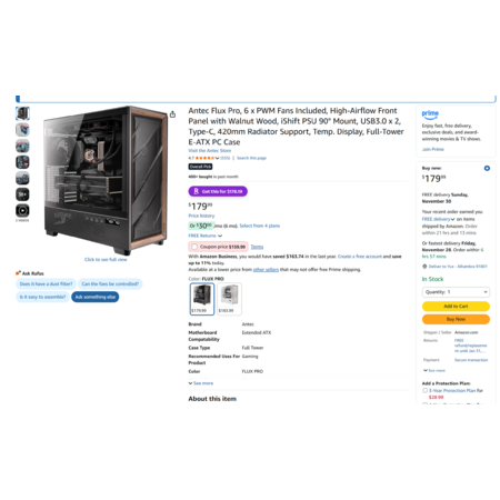Model: Antec Flux Pro, 6 x PWM Fans Included, High-Airflow Front Panel with Walnut Wood, iShift PSU 90° Mount, USB3.0 x 2, Type-C, 420mm Radiator Support,...