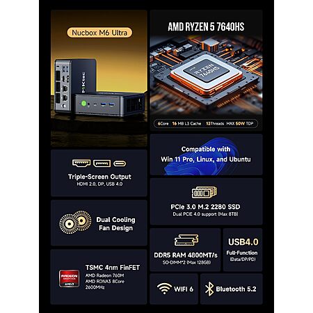 Prime: GMKtec M6 Ultra Mini PC: Ryzen 7640HS, 16GB DDR5, 512GB SSD $322.99
