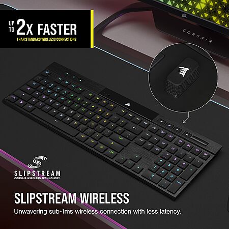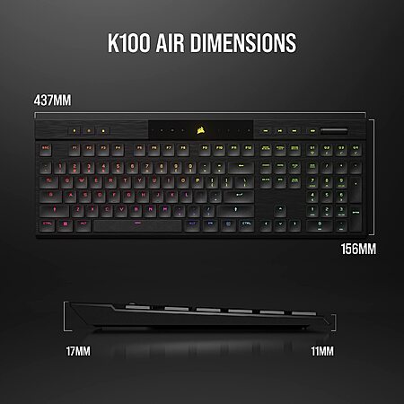 Corsair K100 AIR Wireless RGB Mechanical Gaming Keyboard - Ultra-Thin, Sub-1ms Slipstream, Low-Latency Bluetooth, Cherry MX Ultra Low Profile Keyswitches - NA Layout, QWERTY - Black