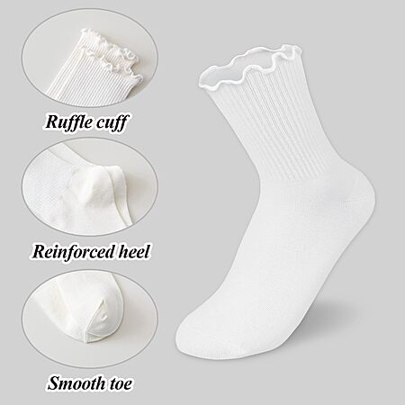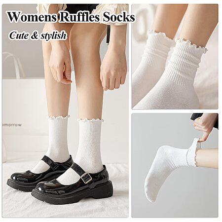 - Sweet Ruffle Cuff Design: These cute socks feature a ruffled cuff that adds a special and sweet touch to your look. The fashionable and exquisite ruffled socks bring you a youthful, eye-catching style