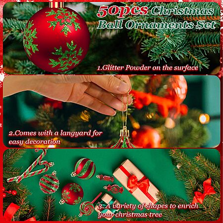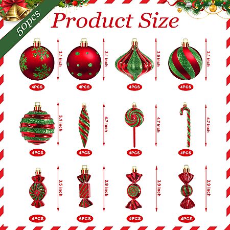 $17.99 50Pcs Christmas Candy Cane Ornament Set for Christmas Tree Decorations Red Green Red and Green Decor