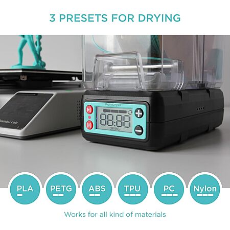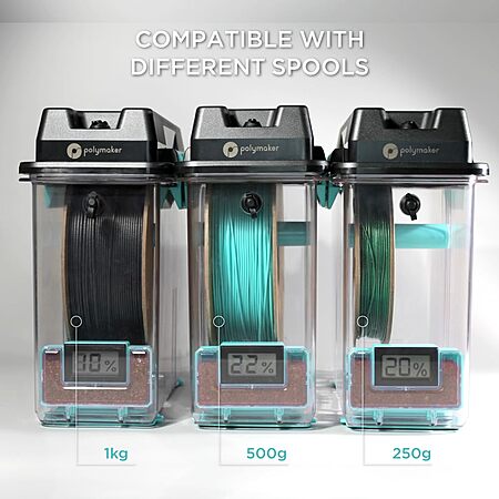 Polymaker 3D Printing Filament Dryer and Storage Box - PolyDryer and PolyDryer Box for Filament Drying and Sealing with Heat Control, Compatible with PA Nylon, PLA, PVB, PETG, ABS, TPU 1.75mm 2.85mm