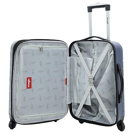 20" Wrangler Smart Carry-On Luggage w/ Cup Holder & USB Port (Navy Blue or Toffee) on sale for
