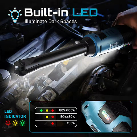SEESII 6" 12V Cordless Electric Extended Ratchet Wrench 3/8" w/ 2 Batteries on sale for $40.XX - $8 extra off w/ promo code