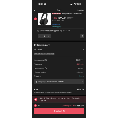 Hi all, TikTok Shop has Sony's 1000XM6 available through Beach Camera at $390.04. Pay with Venmo to save $15 extra, bringing it down to $375.04. App only.