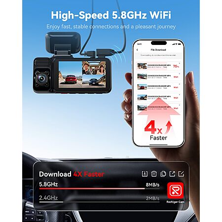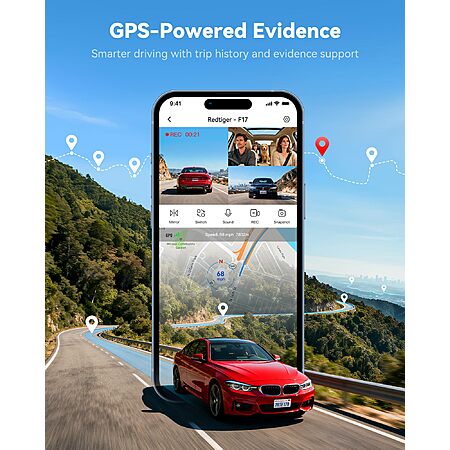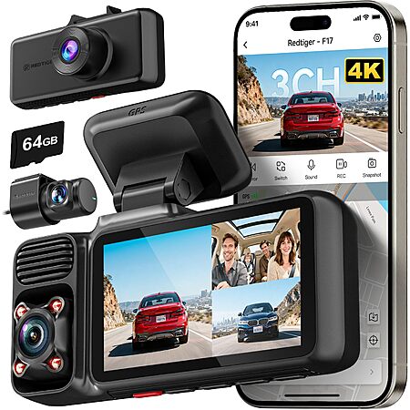 REDTIGER F17 4K 3 Channel Dash Cam, 3" Screen, 64GB Card, 2160P+1080P+1080P $98.16