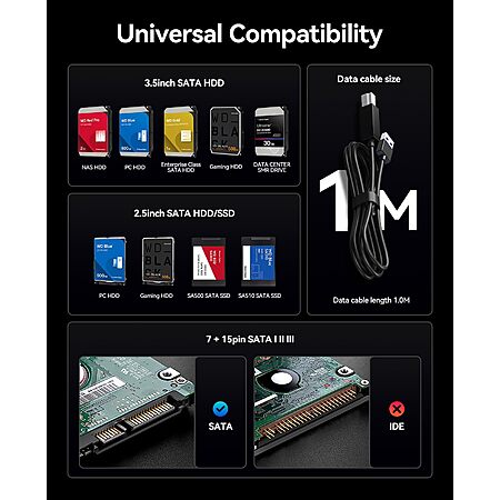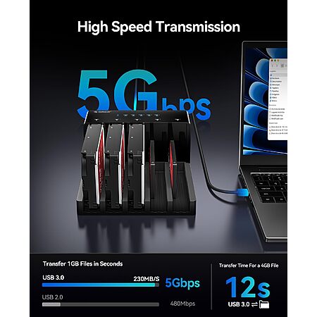 • 【5Gbps Transfer Speed】- USB 3.0 hard drive dock boasts transfer speeds up to 230MB/s for quick file transfers and a more efficient workflow, saving more time on critical tasks; 20% faster than the traditional USB 3.0; Backward compatible with USB 2.0 and USB 1.1