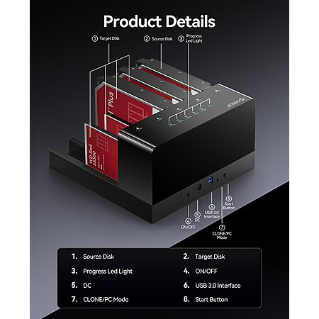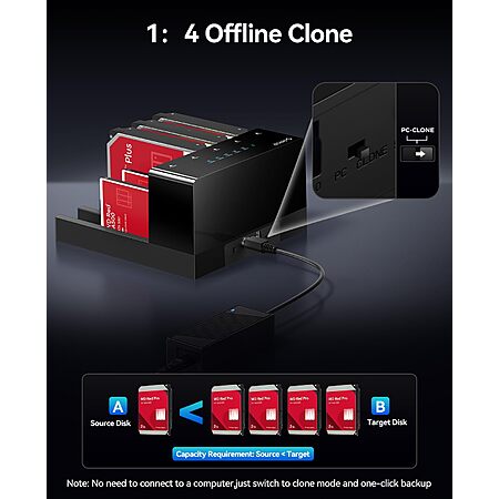 • 【Offline Clone】- This hard drive duplicator support 1:4 offline cloning, providing multiple backups and expand storage space between your devices