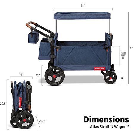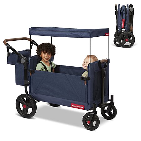 Foldable Wagon, Baby Stroller, Rolling Cart, Outdoor Play Beach Cart, Outside Toys for Toddlers 1-3, Radio Flyer Atlas Stroller Wagon for Kids Ages 1+ Years, Blue for $199.99