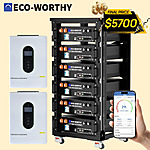 6-Pack ECO-WORTHY 48V 100Ah LiFePO4 Batteries + 2*12KW 48V Off-Grid Inverter + 6-Tier Server Rack on sale for $6199.99 - $500 with coupon code