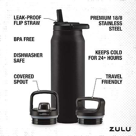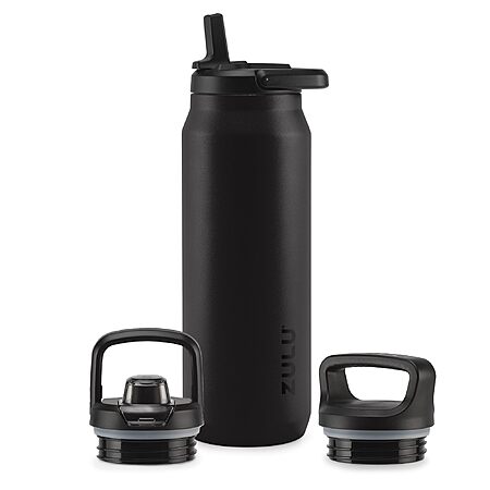 40-Oz Zulu Stainless Steel Base Water Bottle w/ 3 Lids (Black or Vitamin C) for