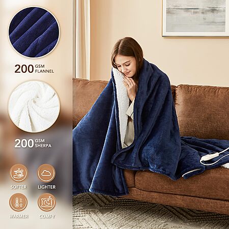 [Prime] 50" x 60" Homemate Heated Electric Throw Blanket (Navy Blue) $20.61 + Free Shipping
