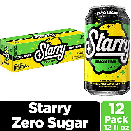 Starry Lemon Lime Soda Regular or Starry Zero , 12 Fl Oz Cans (Pack of 12) 4 12 packs for $17.80 S&S PRIME Shipped after $5 off Savings