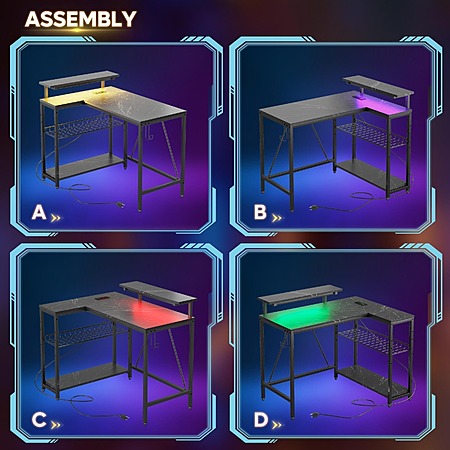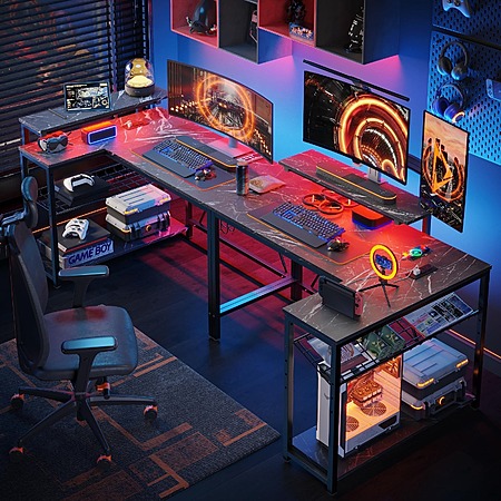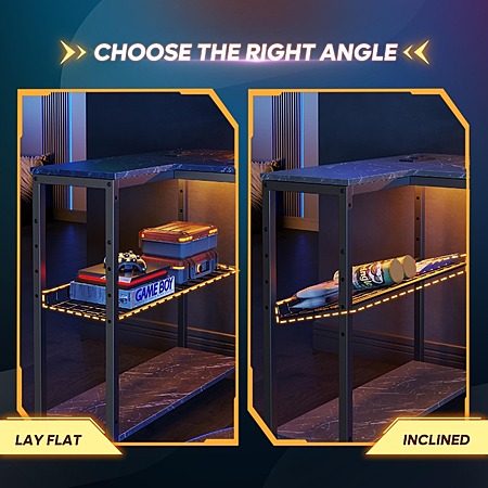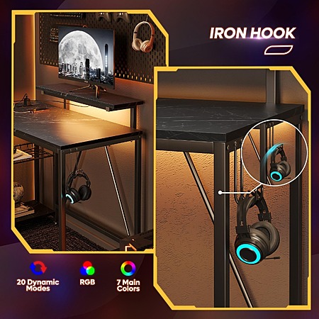 Bestier 42" Reversible L-Shaped Gaming Desk w/ Charging Station, LED Lights, Monitor Stand & Headset Hooks (Black Marble) $58 + Free Shipping