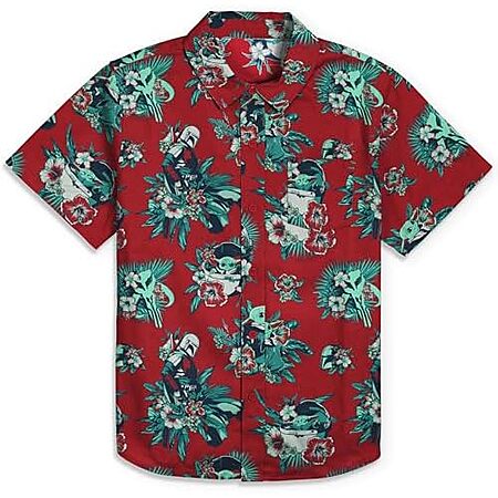 $9.99: Men's Baby Yoda Hawaiian Bouquet Button Up at Amazon