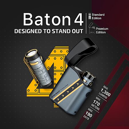 OLIGHT Baton4 Premium Edition EDC Flashlight 1300 Lumens with Type-C Charging Case, Powered by Rechargeable Battery $66.49