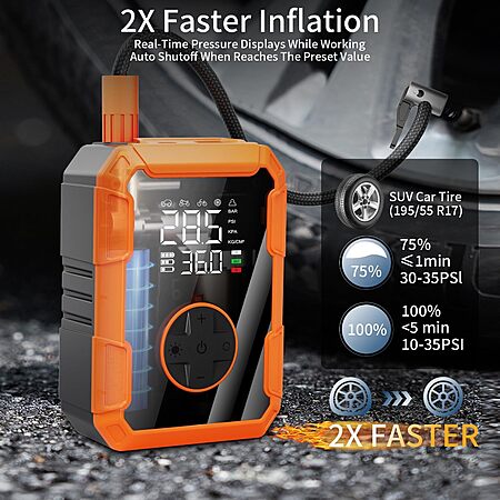 Lazyshine Portable Air Pump Tire Inflator w/ LED Light (Black&orange) on sale for $19.99 - $8 off when you enter the coupon code