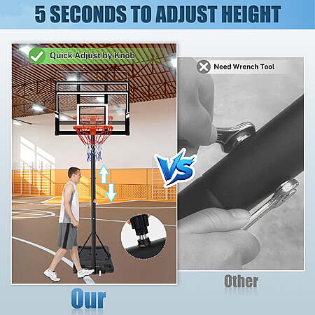 | Product Description: | The Segmart outdoor basketball hoop features a solid larger base while others' in order to provide greater load bearing and withstand strong winds. It can be filled with water or sand to ensure excellent stability and safety for every shot. The Brand New Portable Basketball Hoop for Kids, Youth, and Adults, which can adjust the height from 8.4 feet to 10 feet when Installing all three poles, or adjust the height from 5.6 feet to 7.3 feet with two poles removed. Note: The basketball shown in the pictures is not included. 🏀 Secure Structure & Durable :Segmart portable basketball hoop is equipped with a robust and stable base triangular support structure. 🏀 Quick Adjust Height 5.6-10ft :Outdoor adjustable basketball hoop Labor-saving quick lift system is equipped with 16 levels of height to choose. 🏀 Sturdy Base & Portable :The high-strength PE base needs filling with water or sand to ensure stability and safety for every shot. 🏀 Perfect Gift For Basketball Lovers :Surprise the basketball fan in your life with a high-quality basketball hoop, offering the family the opportunity to enjoy their favorite sport right. 🏀 Only 20 Minutes to Install :Refer to the install instruction manual enjoy the interesting basketball hoop goal system assembly process with your family, and the assembly only takes 15 minutes or less. Specifications: Rim Height: from 3.3ft to 4.9ft Total Height: from 8.4ft to 10ft Rim Material: Metal Pole Net Material: Weatherproof nylon Backboard Material: PE 💯【16 LEVELS for HEIGHT ADJUSTMENTS】Adjustable Basketball Hoop features a seamless height adjustment from 3.3ft to 10ft, which meets the different height needs from kids to adults, enjoying the fun of basketball play. 💖【ROBUST BASKETBALL BACKBOARD】Portable Basketball Hoop is made from high-strength shatterproof polycarbonate. Thanks to the upgraded material above, Segmart basketball hoop outdoors is sturdy and durable enough for bad weather and intense games for your long-term use. ⚙️【STURDY BASE & PORTABLE】Outdoor Basketball Hoop is equipped with a robust and stable base triangular support structure. The high-strength PE base needs filling with water and sand to ensure stability and safety for every shot. The base is built in two wheels making it easy to move by one person. 🎁【PERFECT GIFT FOR BASKETBALL LOVERS】Surprise the basketball fan in your life with a high-quality basketball hoop, offering them the opportunity to enjoy their favorite sport right. It promotes coordination and provides a fun way to stay active and fit, that combines their passion for basketball with hours of entertainment. It's an ideal gift for your friends and family. ⌛【JUST 20 MINUTES to ASSEMBLY & EXCELLENT SERVICE】Refer to the install instruction manual enjoy the interesting basketball hoop goal system assembly process with your family, and the assembly only takes 20 minutes or less. Please feel free to contact our customer support team if there is any damage or missing parts in transport. We will resolve your concerns within 24 hours. 🏀【When is this product suitable for you to get?】Outdoor Basketball Hoop, Pool Basketball Hoop, Adjustable Basketball Hoop Outdoor, Basketball Hoop Goal System for Children, Youth and Adults. |